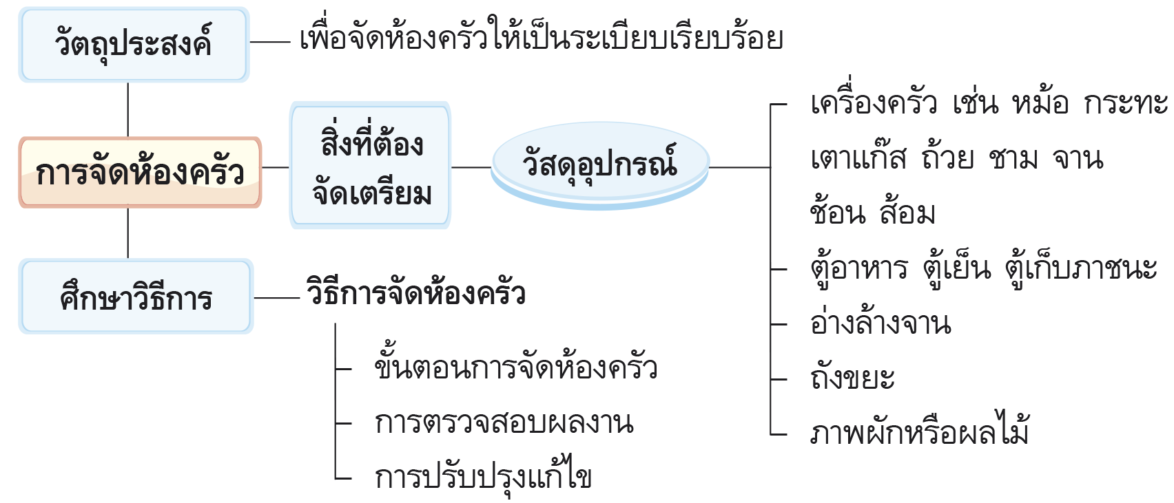 การจัดห้องครัว ตามกระบวนการทำงานมีขั้นตอนดังนี้