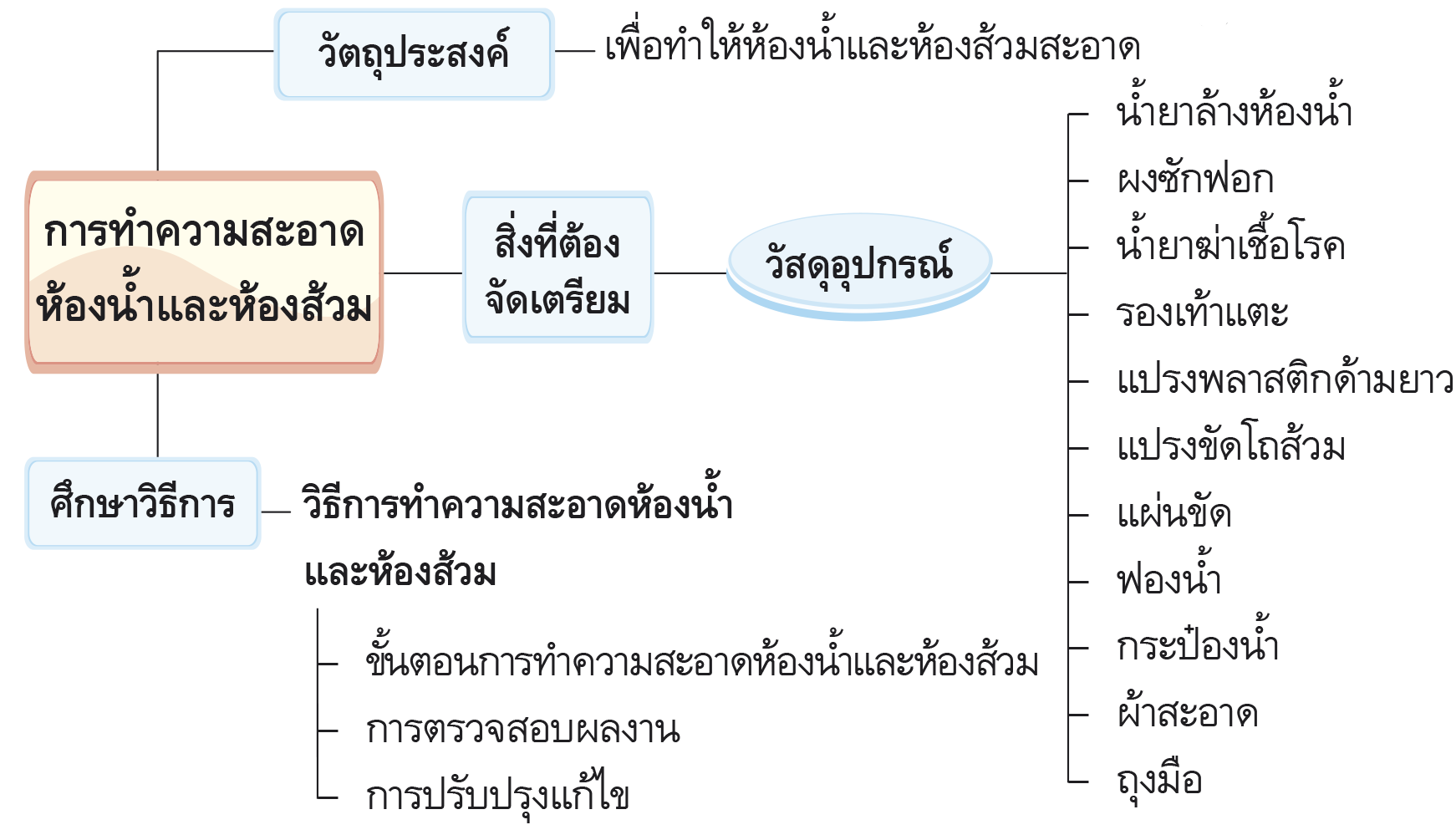 การทำความสะอาดห้องน้ำและห้องส้วม ตามกระบวนการทำงานมีขั้นตอนดังนี้