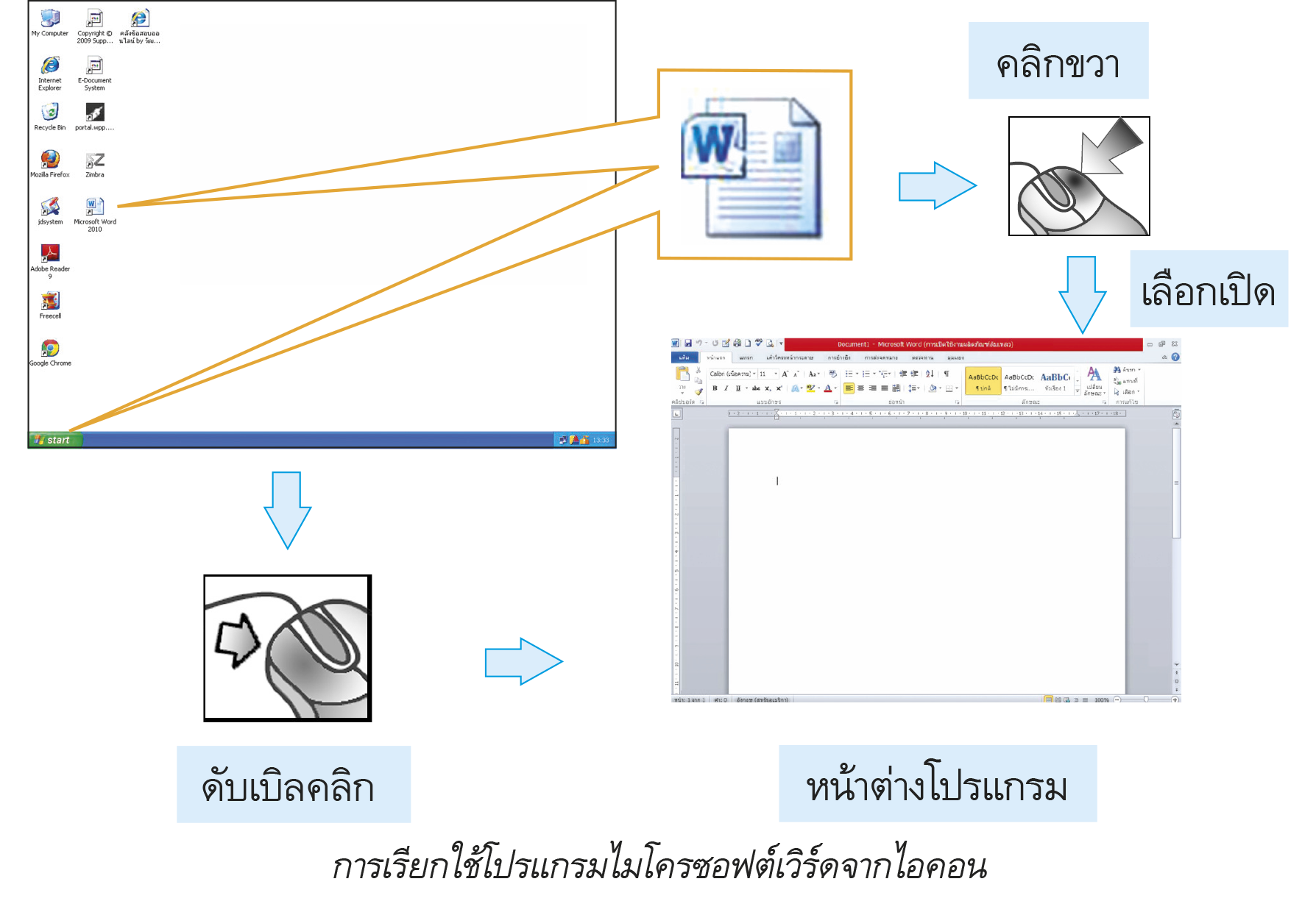 วิธีที่ 1 เรียกใช้งานโปรแกรมไมโครซอฟเวิร์ดจากไอคอน