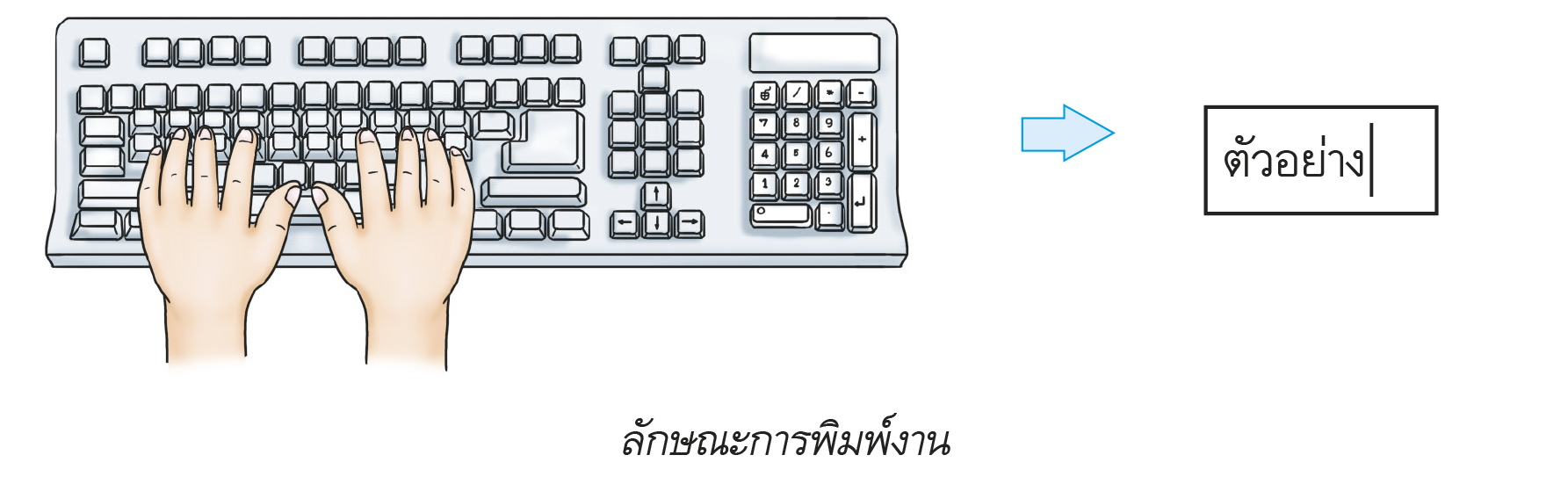 การพิมพ์ตัวหนังสือหรือข้อความ ตัวหนังสือที่พิมพ์จะปรากฏอยู่หน้าเคอร์เซอร์ที่กระพริบอยู่