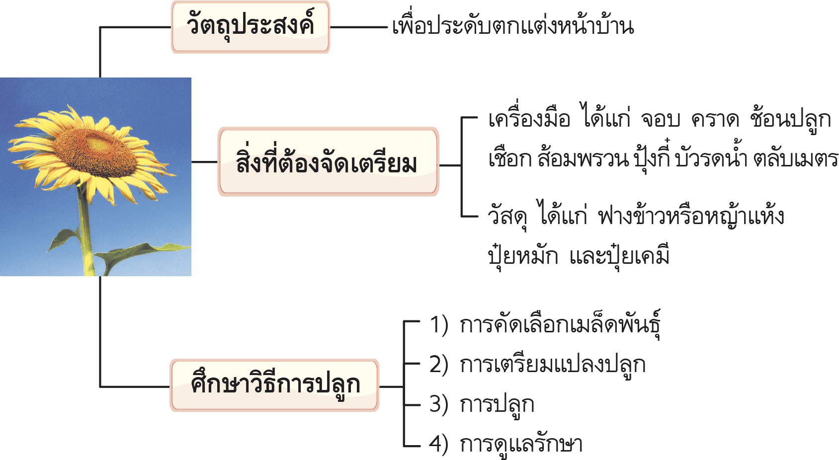 1. การวิเคราะห์งาน เพื่อศึกษารายละเอียดต่าง ๆ ในการปลูกดอกทานตะวัน