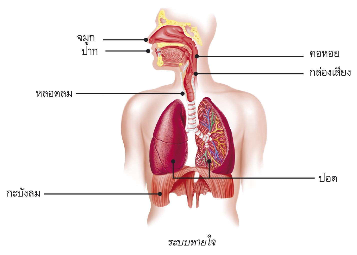 ระบบหายใจ (the respiratory system) ทำหน้าที่แลกเปลี่ยนก๊าซ โดยขับคาร์บอนไดออกไซด์ออกไป และรับออกซิเจนเข้ามาเลี้ยงส่วนต่าง ๆ ของร่างกาย มี จมูก คอหอย กล่องเสียง หลอดลม และปอด เป็นองค์ประกอบที่สำคัญ