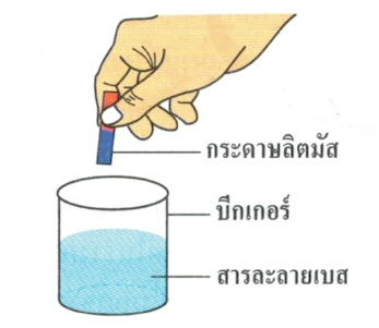 2. เปลี่ยนสีกระดาษลิตมัสจากสีแดงเป็นสีน้ำเงิน