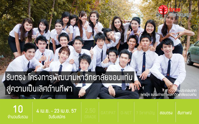 ดูรายละเอียดเพิ่มเติม >> รับตรง โครงการพัฒนามหาวิทยาลัยขอนแก่นสู่ความเป็นเลิศด้านกีฬา