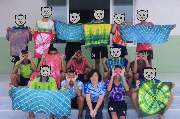 “เคยมีเด็กที่มีทักษะด้านศิลปะเข้ามา เลยให้ลองใช้สีอะคริลิกฝึกวาดภาพสไตล์ Impressionism โดยใช้ตัวอย่างงานของวินเซนต์ แวนโก๊ะห์เป็นแบบ ปรากฏว่าเด็กก็ทำได้ดี เขามีความตั้งใจที่จะเรียนรู้ มันเลยสะท้อนออกมาเป็นผลงานที่สวยงาม แม้เด็กจะได้รับการปล่อยตัวไปแล้ว แต่ผลงานเซ็ตนั้นยังใส่กรอบแขวนไว้ในห้องพักครูอยู่ค่ะ และตอนนี้เราสร้างเพจเฟซบุ๊คเอาไว้จัดแสดงผลงานของเด็กๆ ด้วย ชื่อเพจว่า art class pinit Phuket เข้าไปติดตามชมกันได้นะคะ สำหรับผลงานที่เป็นผลิตภัณฑ์จะส่งให้กับทางศูนย์จำหน่ายผลิตภัณฑ์เด็กและเยาวชนที่ทางกรมจัดขึ้น ส่วนผลงานที่เป็นภาพวาดก็นำใส่กรอบไว้มอบเป็นของที่ระลึกให้ผู้ใหญ่ที่มาเยี่ยม เช่น กรรมการสงเคราะห์ ผู้พิพากษาหัวหน้าศาลเยาวชนและครอบครัวจังหวัดภูเก็ต บางชิ้นงานได้ไปประดับต่อที่ศาลก็มี และเร็วๆ นี้ ได้ร่วมกิจกรรมกับสภาเด็กและเยาวชนจังหวัดภูเก็ตโดยการร่วมส่งผลงานเข้า ประกวดในหัวข้อ “การ์ตูน สร้างสรรค์สู่อิสระทางความคิด” โดยให้เด็กทำผลงานในรูปแบบของผ้าบาติกเข้าร่วมประกวด และในครั้งต่อไป หากมีงานประกวดของหน่วยงานอื่นๆ อีก ก็จะให้เด็กๆ ได้มีโอกาสร่วมส่งผลงานเข้าประกวดอีกค่ะ นอกจากนี้ยังมีแผนที่จะนำผลิตภัณฑ์ของเด็กๆ ไปวางจำหน่ายที่ถนนคนเดินในย่านดาวน์ทาวน์ที่จัดทุกวันอาทิตย์ และนำรายได้จากการจำหน่ายมาจัดซื้อวัสดุอุปกรณ์งานศิลปะค่ะ”