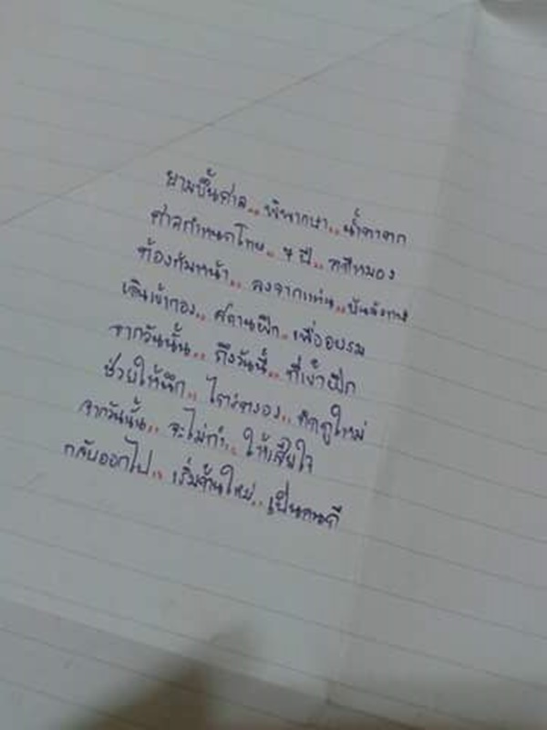 “มัน เป็น ‘โชคดีในความโชคร้าย’ จากสิ่งที่ไม่คาดคิดว่าจะได้เข้ามาทำงานในสถานที่ควบคุมเด็กและเยาวชนที่ สังคมมองว่าเป็นเด็กเกเรมีปัญหา ใครๆ ก็ไม่อยากยุ่งเกี่ยว แต่เชื่อไหมว่าเรามองเห็นบางอย่างในตัวพวกเขา นั่นคือ ความมีน้ำใจ เคยดูคลิปที่เด็กนักเรียนแอบถ่ายครูคนหนึ่งในห้องเรียนหลังเลิกเรียน ครูกำลังเก็บเก้าอี้และกวาดห้องเรียนอยู่ ซึ่งถ้าเราได้ไปสอนในโรงเรียนปกติก็คงเป็นแบบนั้น (หัวเราะ) แต่การมาทำงานที่นี่ เราเห็นความมีน้ำใจของเด็กๆ หลายคน บอกได้เลยว่า เราจับไม้กวาดนับครั้งได้ เด็กๆ ที่เรามองเห็นภายนอกว่าน่ากลัว ไม่กล้าเข้าใกล้ สักลายทั้งตัว วิ่งเข้ามาหาเราเพื่อช่วยถือสัมภาระให้ พร้อมกับบอกว่า “ครู ผมช่วยถือให้นะ” มันเป็นความประหลาดใจ ระคนตกใจเล็กๆ เลยก็ว่าได้ เวลาจะกลับบ้านพัก เด็กๆ จะยกมือไหว้ และบอก “คู! ขับรถดีๆ นะ” บางคนก็แซวๆ ว่า “ฝันดีนะคู” เค้าไม่พูดควบกล้ำ ร นะ แถมยังแหลงใต้ใส่ด้วย พูดกลางก็ไม่ชัด เราก็พยายามฟังจนเข้าใจ แต่นั่นคือ ความน่ารักของพวกเขา เราเองก็คิดว่า เออ ที่เด็กเรียกเราว่า “คู” ก็คงเหมาะสมแล้วล่ะ เพราะเรายังห่างชั้นกับคำว่า “ครู” อีกเยอะ (หัวเราะ)”