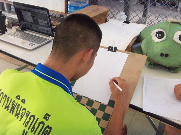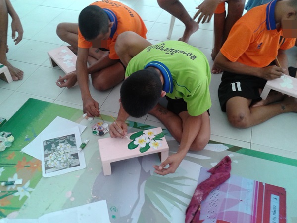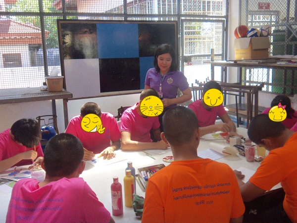 “กิจกรรม ศิลปะ ถือเป็นการบำบัดด้านพฤตินิสัยอย่างหนึ่ง อย่างแรก คือ การฝึกสมาธิ เด็กที่เข้ามาในช่วง 1-7 วันแรก เรามักจะถามว่า ขณะที่นั่งทำงานที่ครูมอบหมายให้ เรากำลังคิดถึงเรื่องอะไรอยู่ ถ้าเด็กตอบว่า กำลังคิดว่าจะลากเส้นไปทางไหนดี หรือบอกว่า กำลังคิดถึงเรื่องที่กำลังวาดอยู่ นั่นคือ เขาเริ่มมีสมาธิจดจ่อกับสิ่งที่อยู่ตรงหน้าได้ ในระดับหนึ่งแล้วต่อมา คือ การปรับสภาวะของอารมณ์ หลายคนที่ก่อคดี เพราะอารมณ์เพียงชั่ววูบ ขาดความยับยั้งชั่งใจ ผลงานแต่ละชิ้นเราดูออกเลยว่าใครใจร้อน ใครใจเย็น หรือใครที่มีความลังเลใจ ฉะนั้น การให้เขาได้ทำงานศิลปะจะเป็นการฝึกให้เขาอารมณ์เย็นลง ฝึกการทำงานเป็นขั้นตอนอย่างค่อยเป็นค่อยไป ปรับจังหวะชีวิตให้ช้าลงเพื่อให้มีสติมากขึ้น”