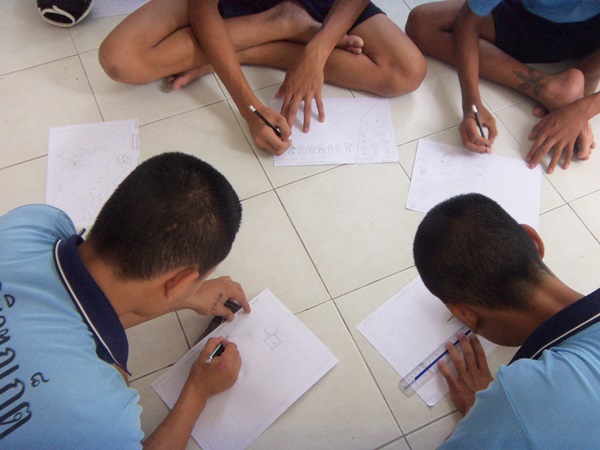 “เรา ต้องสังเกตพฤติกรรมของเด็กแต่ละวันด้วย เด็กที่ถูกควบคุมตัวมักจะเกิดความเครียดและความวิตกกังวลอยู่บ่อย ๆ ไม่ว่าจะเป็น เรื่องผลการตัดสินคดี เรื่องความเป็นอยู่ของคนทางบ้านและอื่น ๆ สารพัด ต้องสังเกตว่าถ้าวันไหนอารมณ์ขุ่น ๆ ยังไม่มีสมาธิพอ เราก็จะให้เขาออกไปพักก่อน อารมณ์ดีแล้วค่อยกลับมาทำใหม่ การทำงานศิลปะเราไม่อยากบังคับหรือฝืนใจให้ทำ อยากให้เขาได้ผ่อนคลาย ขอแค่เขาไม่รบกวนผู้อื่น เคารพกติกา เราก็โอเคแล้ว ส่วนเรื่องผลสำเร็จของงานนั้นถือว่าเป็นผลพลอยได้ค่ะ”