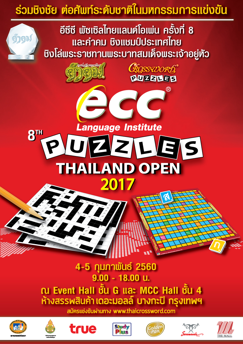 สถาบันภาษาอีซีซี ร่วมกับ สมาคมครอสเวิร์ดเกม เอแม็ท คำคม และซูโดกุ แห่งประเทศไทย ห้างสรรพสินค้าเดอะมอลล์ บางกะปิ จัดการแข่งขันเกมส์กีฬาทางวิชาการ “อีซีซี พัซเซิล ไทยแลนด์โอเพ่น ครั้งที่ 8 และคำคม ชิงแชมป์ประเทศไทย ครั้งที่ 10” ประจำปี 2560 ระหว่างวันเสาร์และอาทิตย์ ที่ 4-5 กุมภาพันธ์ 2560 ณ ห้างสรรพสินค้าเดอะมอลล์ บางกะปิ