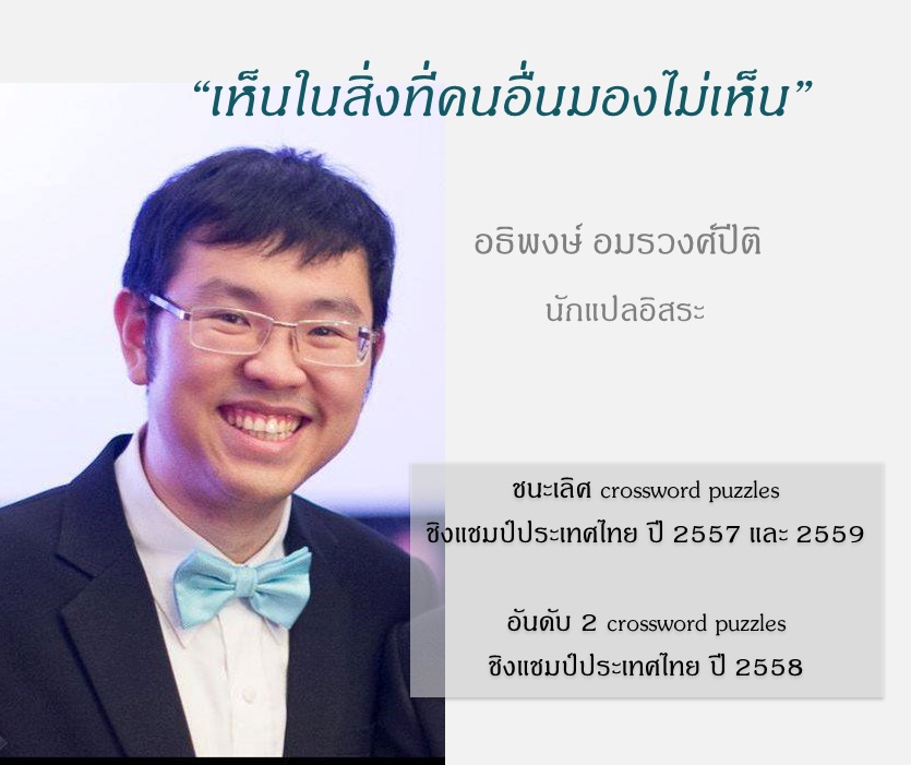 เกมยอดฮิตปริศนาอักษรไขว้ หรือ ครอสเวิร์ดพัซเซิลบนหน้าหนังสือพิมพ์ที่ได้รับความนิยมทั่วโลกมานานร่วมร้อยปี กำลังกลายมาเป็นการแข่งขันค้นหาสุดยอดนักไขปริศนาครั้งสำคัญในประเทศไทย ทั้งในแบบภาษาอังกฤษ และภาษาไทย