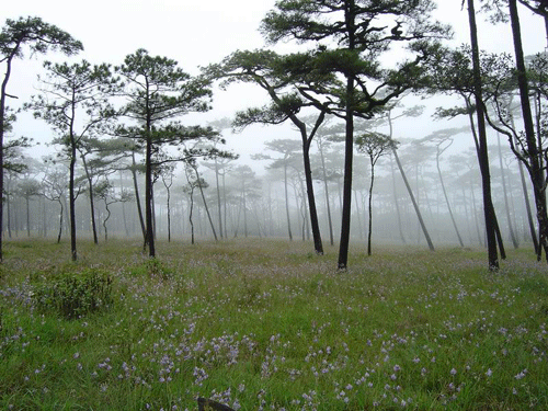 ป่าสนเขา พบขึ้นในระดับความสูงจากน้ำทะเล 1,400 เมตรขึ้นไป เป็นป่าผืนใหญ่ขึ้นเป็นกลุ่ม ชนิดไม้ที่สำคัญที่พบได้แก่ สนสามใบ ก่อชนิดต่างๆ พืชพื้นล่างเป็นพวกหญ้าชนิดต่างๆ ดอกไม้ดิน เช่น ดอกหงอนนาค ดอกกุง เป็นต้น
