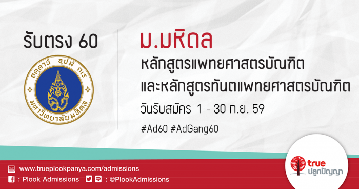 มหาวิทยาลัยมหิดล รับสมัครบุคคลเพื่อคัดเลือกเข้าเป็นนิสิตระดับปริญญาตรี คณะแพทยศาสตร์ศิริราชพยาบาล คณะแพทยศาสตร์โรงพยาบาลรามาธิบดี และคณะทันตแพทยศาสตร์ ระบบรับตรง (มหิดลเพื่อชาวชนบท) ประจำปีการศึกษา 2560