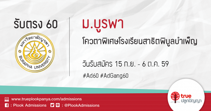 มหาวิทยาลัยบูรพา รับบุคคลเข้าศึกษาต่อ โควตาพิเศษโรงเรียนสาธิต "พิบูลบำเพ็ญ" ประจำปีการศึกษา 2560