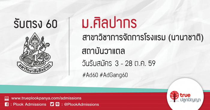 มหาวิทยาลัยศิลปากร รับบุคคลเข้าศึกษาต่อ คณะวิทยาการจัดการ สาขาวิชาการจัดการโรงแรม (นานาชาติ) สถาบันวาแตล ประจำปีการศึกษา 2560