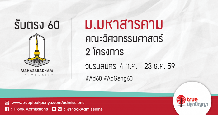 มหาวิทยาลัยมหาสารคาม รับสมัครนักศึกษาระดับปริญญาตรี คณะวิศวกรรมศาสตร์ 2 โครงการ [โครงการเส้นทางสู่วิศวกรรุ่นใหม่ , โครงการโควตาระบบพิเศษ (เทียบเข้า)] ปีการศึกษา 2560