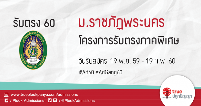 มหาวิทยาลัยราชภัฏพระนคร รับสมัครบุคคลเพื่อคัดเลือก เข้าเป็นนิสิตระดับปริญญาตรี โครงการรับตรงภาคพิเศษ ประเภท : กศ.พบ. (เสาร์ - อาทิตย์) ประจำปีการศึกษา 2560