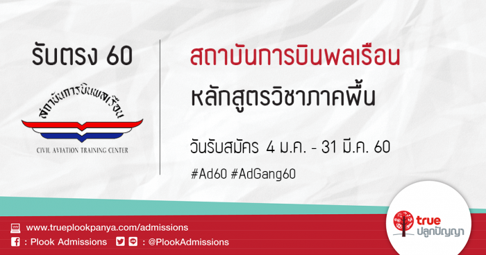สถาบันการบินพลเรือน รับสมัครบุคคลเพื่อคัดเลือกเข้าเป็นนิสิตระดับปริญญาตรี หลักสูตรวิชาภาคพื้น ประจำปีการศึกษา 2560