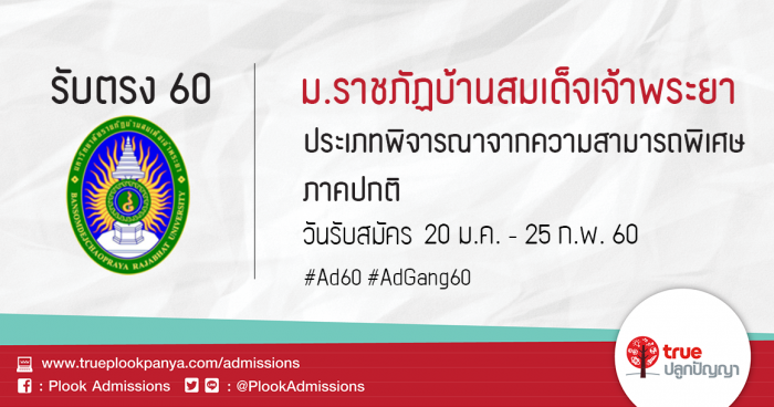 มหาวิทยาลัยราชภัฏบ้านสมเด็จเจ้าพระยา รับสมัครบุคคลเพื่อคัดเลือกเข้าเป็นนิสิตระดับปริญญาตรี ประเภทพิจารณาจากความสามารถพิเศษ ภาคปกติ ประจำปีการศึกษา 2560