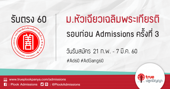 มหาวิทยาลัยหัวเฉียวเฉลิมพระเกียรติ รับสมัครบุคคลเข้าศึกษาต่อ รอบก่อน Admissions ครั้งที่ 3 ประจำปีการศึกษา 2560
