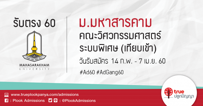 มหาวิทยาลัยมหาสารคาม รับสมัครสอบคัดเลือกบุคคลเข้าศึกษา คณะวิศวกรรมศาสตร์ ระบบพิเศษ (เทียบเข้า) ประจำปีการศึกษา 2560