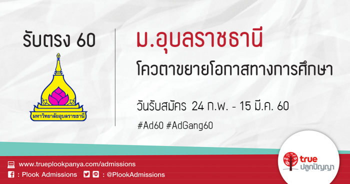 มหาวิทยาลัยอุบลราชธานี รับสมัครคัดเลือกบุคคลเข้าศึกษา โควตาขยายโอกาสทางการศึกษา ประจำปีการศึกษา 2560