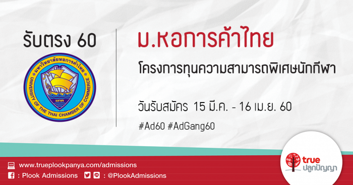 มหาวิทยาลัยหอการค้าไทย รับสมัครบุคคลเพื่อคัดเลือกเข้าเป็นนิสิตระดับปริญญาตรี โครงการทุนผู้มีความสามารถพิเศษประเภททุนนักกีฬา ประจำปีการศึกษา 2560