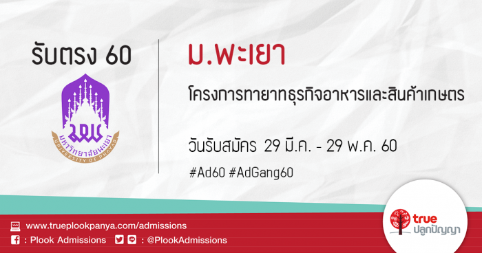 มหาวิทยาลัยพะเยา รับสมัครบุคคลเพื่อคัดเลือกเข้าเป็นนิสิตระดับปริญญาตรี โครงการทายาทธุรกิจอาหารและสินค้าเกษตร ประจำปีการศึกษา 2560