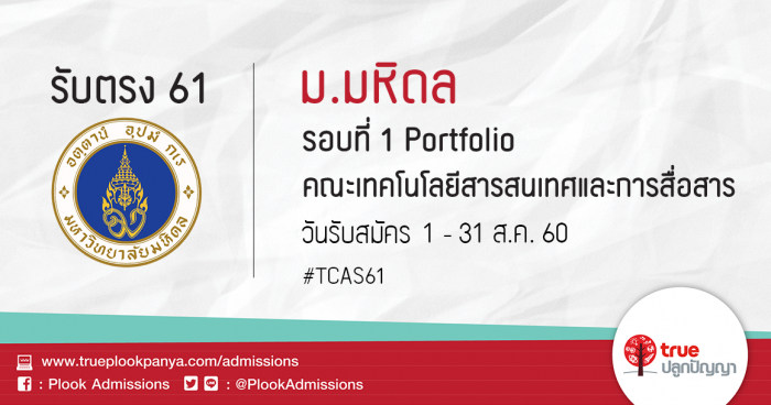 มหาวิทยาลัยมหิดล รับสมัครบุคคลเพื่อคัดเลือกเข้าเป็นนิสิตระดับปริญญาตรี รอบที่ 1 Portfolio คณะเทคโนโลยีสารสนเทศและการสื่อสาร ประจำปีการศึกษา 2561