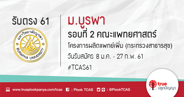 รับตรง 61 ม.บูรพา รอบที่ 2 คณะแพทยศาสตร์ โครงการผลิตแพทย์เพิ่ม (กระทรวงสาธารสุข)