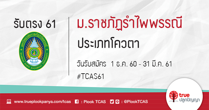 - สมัครด้วยตนเองได้ที่ กลุ่มงานบริหารทั่วไป กองบริการการศึกษา อาคาร 36 ชั้น 1 ม.ราชภัฏรำไพพรรณี