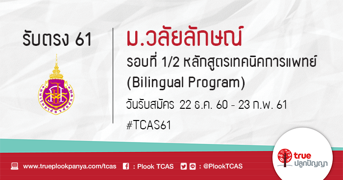 รับตรง 61 ม.วลัยลักษณ์ รอบที่ 1/2 หลักสูตรเทคนิคการแพทย์ (Bilingual Program)