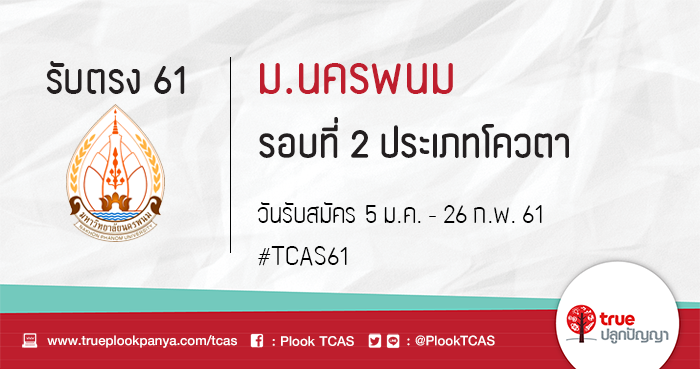 รับตรง 61 มหาวิทยาลัยนครพนม (มนพ.) รับสมัครสอบคัดเลือกบุคคลเข้าศึกษา รอบที่ 2 ประเภทโควตา ประจำปีการศึกษา 2561