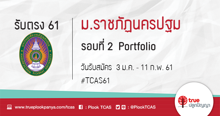 รับตรง 61 มหาวิทยาลัยราชภัฏนครปฐม (มภร.นครปฐม) รับสมัครสอบคัดเลือกบุคคลเข้าศึกษา รอบที่ 2 Portfolio 2 ประจำปีการศึกษา 2561