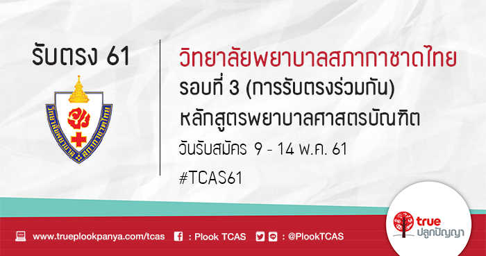 รับตรง 61 วิทยาลัยพยาบาลสภากาชาดไทย รอบที่ 3 (การรับตรงร่วมกัน) หลักสูตรพยาบาลศาสตรบัณฑิต