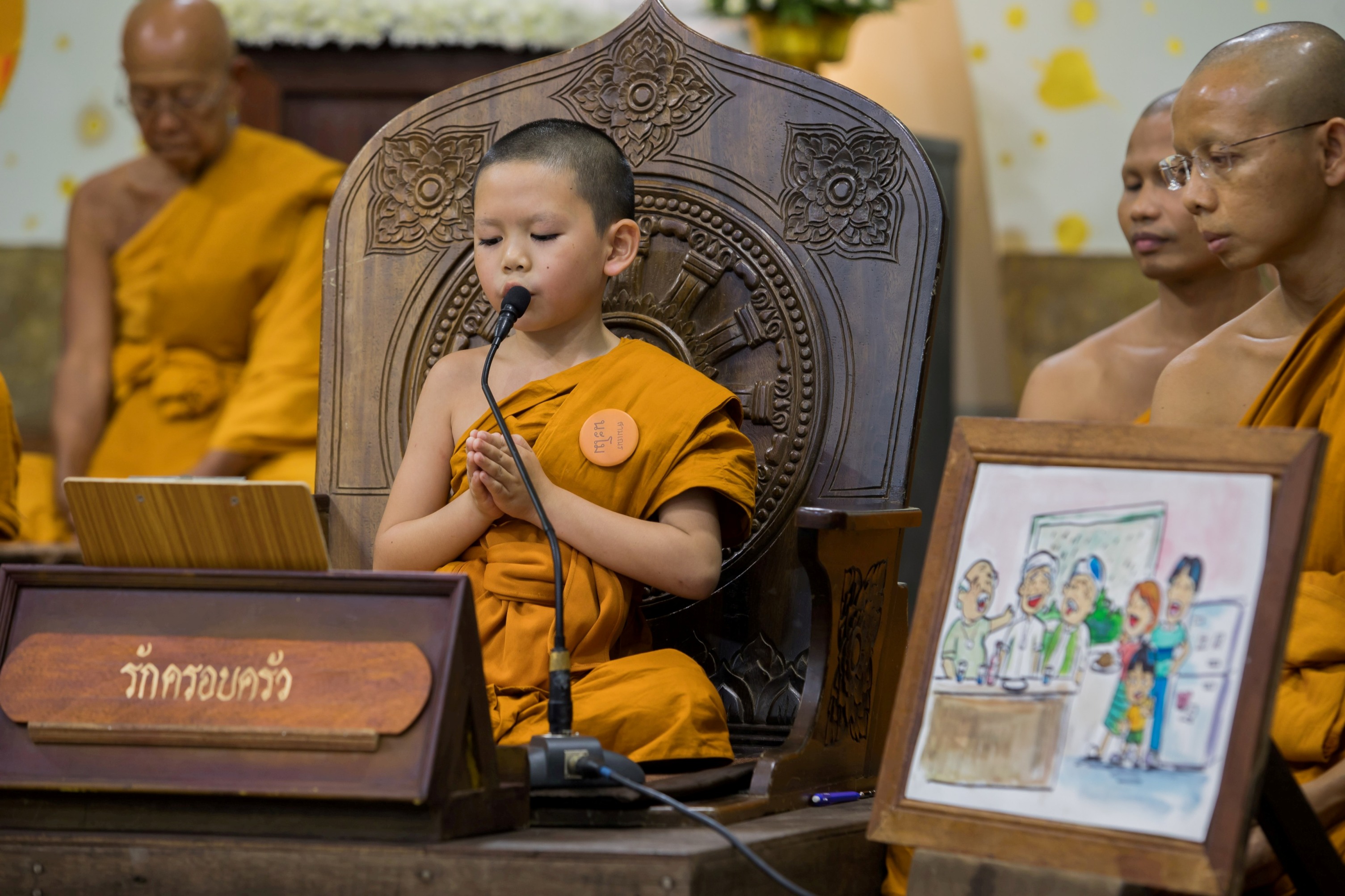 น้องคิด ด.ช.ฟีนิกซ์ แชร์ฟ อายุ 10 ขวบ จากจังหวัดจันทบุรี ได้บรรยายธรรมอย่างซาบซึ้ง แสดงถึงความกตัญญูกตเวทีว่า